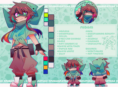➤ Hello!! My name is MidoriMatcha! Feel free to call me Midori, Mido, Iro, Mid, etc. (i love nicknames!!)➤ Digital Artist | 2D Animator | Online Writer➤ February 17 | MINOR ! !